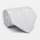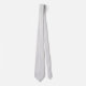 La cravate blanche de cet homme a un motif de rayures verticales. Les bandes noires sont minces.