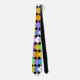 Cette cravate a un design géométrique de diamants néons se chevauchant sur un champ de noir.