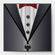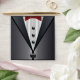 Elégant tuxedo noir avec chemise blanche et enveloppe formelle carré de cravate arc rouge. Intérieur noir et adresse de retour sur le rabat arrière.