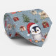 Une mignonne cravate de Noël de bébé pingouin avec un pingouin doux dans un chapeau de Père Noël, entourée de cadeaux festifs, arbres de Noël, et neige en pente douce. Un bel accessoire fantaisiste et festif pour la saison des fêtes.