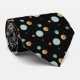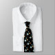Magnifique cravate avec des points élégants en bleu clair et couleurs dorées sur fond noir.
