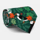 Motif Puffin coloré et amusant avec beaucoup de feuillage vert et luxuriant et des fleurs. Couleurs vertes et oranges vives.