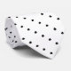 Cette cravate de qualité a un arrière - plan blanc avec des rangées des taches noires inégales écartées diagonalement au-dessus de la cravate. La conception sur cette cravate est une nécessité ont pour chaque vêtement d'usage ou de mariage de jour. Le motif unique peut être porté pour beaucoup d'occasions spéciales. Le motif sur cette cravate blanche couvre l'avant et le dos. L'effet global se tient vraiment, il n'est pas trop occupé et il est facile de porter. Une cravate intéressante pour tous les âges et toutes les occasions.