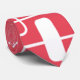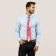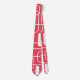 Cette cravate a un design moderne du milieu du siècle de rectangles ouverts et fermés en blanc sur un champ de rouge.