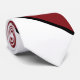 Cette cravate présente un design abstrait rouge, blanc et noir.