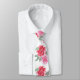 Une belle peinture rose rose et rouge douce et pastel avec des feuilles verts de forêt sur le blanc crée un cravate moderne et frappant pour le marié et sa fête de mariée. Merci à smelltheroses(dot)com pour ses belles illustrations.