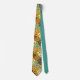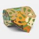Cette cravate a un design moderne du milieu du siècle d'un adaptateur d'enregistrement qui se superpose partout en tan, blanc cassé, marron, orange, turquoise, bleu et vert.