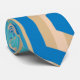 Cette cravate a un design géométrique d'hexagones dans quatre nuances de bleu sur un champ de rayures bronzées dans deux nuances.