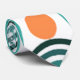 Cette cravate présente un design moderne du milieu du siècle, composé de vagues turquoises et de cercles oranges.