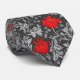 Cravate dans un modèle vintage William Morris floral damask de fleurs et de feuilles d'anémones, numériquement rehaussé et coloré - gris argenté clair / feuilles gris, et fleurs dans les nuances de rouge à lèvres profond sur un arrière - plan gris graphite foncé