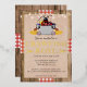 This rustic style design features a wood background with red and white ribbon. On top of that is a burlap texture with a cartoon illustrated crawfish. The red and black serif and handwritten script font is all customizable to your event, whether it is a crawfish boil, lobster, seafood, or fish boil. Celebrate your reunion, engagement, birthday, graduation, or any event is style!