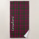Stylish beach towel done in the classic green and orchid Scottish clan Crawford tartan plaid pattern. Personalize the large white text to suit your needs.