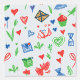 This is a great wallpaper for kids' rooms. It is a crayon-style design with shapes of hearts, plants, and kites.