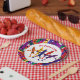 A graphic illustration of crayons by artist/designer Charmaine Paulson on this Kids Birthday Party paper plates.