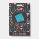 Un badge de laissez-passer de salle personnalisé avec des illustrations de crayons de couleur en arrière-plan et une pile d'enveloppes . Choisissez si vous voulez une attache (cordon ou pince métallique ou aucune). Découvrez notre collection pour voir la série entière .