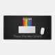 Tapis de bureau avec crayons aux couleurs de LGBT (lesbiennes, gays, bisexuels et transgenres) drapeau arc-en-ciel, design gay pride lgbtqiap+, "Ce sont mes couleurs" texte modèle, par pinkbrickroad