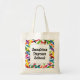 These bags were super cute (I purchased 3). The material is more of a canvas look & feel. The colour of the bag is slightly off white, but the letters look exactly as pictured. I took 3 photos in different lighting. Would recommend! I liked how there was an option to choose the font and colour of the name. The words are legible and the colours are exactly as pictured.