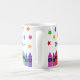 World's best teacher coffee mug personalized with the teacher's name beneath colourful stars and above a row of crayons in a rainbow gradient. Kindergarten teacher coffee mug with colourful crayons and stars.