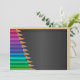 Cette conception est des crayons sur un tableau noir. Il a une pile de crayons colorés sur un côté avec un tableau noir dans l'arrière - plan. Ce crayon sur une conception de tableau noir semble très bien sur cette Invitations
