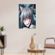 Portrait d'une folle fille de chatte animé avec des cheveux gris et des oreilles de chat, avec un sourire sur le visage. C'est un art généré par l'IA.