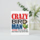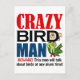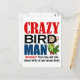 A funny drawing of a bird dad wearing a green super hero costume with text: "Crazy Bird man" in unique fun fonts. Perfect gift ideas for bird lovers, parronts, especially bird daddies who call themselves crazy bird men. Available as t-shirts, mugs, bags and many other merchandises.:)