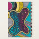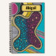 You can use this notebook at home, in the office or at school, and it can be personalized with your name. It is decorated with a pen and ink abstract, resembling an amoeba, with flowing curves and circles, in shades of hot pink and turquois blue, and contrasting background stripes. It's querky, bright and cheerful. The artwork is original, and only available from The Art of Being Beth.