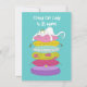Crazy Cat Lady is 21 again birthday party invitation. Unique cat cartoon only available from Laura Davies Art based on Tard the famous internet grumpy cat. Grumpy white cat princess on a pile of colourful pillows and that dastardly pea! Change the background and text colours and personallize the text for your own party.