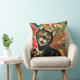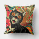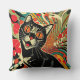 Colourful retro abstract portrait of a black cat for a cat lover in a colourful pillow