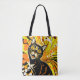 Colourful retro abstract portrait of a black cat for a cat lover in a reuseable tote bag