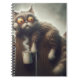CRAZY CAT WITH CUP OF COFFEE ON FENCE NOTEBOOK