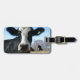 Funny luggage tag has a picture of a black and white cow with crazy eyes with a blue sky background on the front and a customizable area on the back for your own information. Makes a Great Gift!