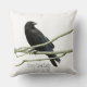 An accent pillow with a crow sitting on a branch with the words "Crazy Crow Lady" beneath.
