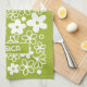 Crazy Daisy Pattern in Spring Green with Name Kitchen Towel