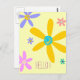 Cheerful Daisy HELLO! design on a lovely postcard. A bright and positive graphic that is sure to bring a smile to that special someone. Customizable in your choice of color and text options. Simple and sweet. Send a note just to say "Hello".