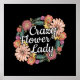 Crazy Flower Lady hippie, gypsy style, artistic floral garden wreath quote for gardener. Colourful mix of Sunflower and Zinnia fine art flower drawings. > Cool idea for a flower garden lover, mother nature or green thumb fans for spring planting season. > Customizable: Add your own custom name or text.