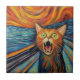 Crazy funny red cat painting. The scream by Edvard Munch inspired art.