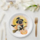Crazy Happy Halloween Pug Riding a Flying Broom Ca Paper Plate
