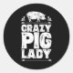 Crazy Pig Lady Funny Farmer Farm Animal Lover Classic Round Sticker