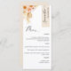 Why spend in place cards and menu cards when you can have an elegant All-in-one elegant Menu personalized with each guest name! Contemporary, simple and elegant design with exquisite watercolor floral detail in a beautiful blend of peach, orange, blush, dusty coral, cream and champagne hues. Modern hand written calligraphy elements. Stripe on the top right corner in champagne cream tone with guest name in black. Back in same champagne cream as stripe. Ability to change both stripe colour or back by selecting "customize further". NOTE: please an individual order for each menu by adding guest name into menu, add menu into shopping cart; then come back to menu, add second guest name, add menu to shopping cart...continue with this process with all guest names on your list. Zazzle does not receive guest names lists to print. For short first guest names add with your keyboard spacebar a few empty "spaces" before name to centre. Design available in a variety of colour choices. Part of our "Peach Floral Delight in Cream Champagne" collection with a variety of coordinating products available. Visit the entire collection at: https://www.zazzle.com/collections/peach_floral_delight_and_cream_champagne-119627301812293761