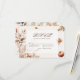 Complete your autumn wedding suite with this sophisticated RSVP response card featuring warm pumpkins, golden leaves, and elegant seasonal botanicals. The classic layout includes spaces for guest names, response options, guest count, and RSVP deadline. Perfect for fall harvest weddings, this design coordinates beautifully with rustic venues and outdoor ceremonies. The refined earth tones and delicate floral elements create a cohesive look that matches your invitation suite while providing all the essential response information you need from your guests.