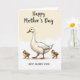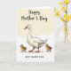 This card shows a tall, white water bird standing proudly at the center, with a gentle tilt to its head that suggests a caring watchfulness ❤️. Its orange beak and matching webbed feet add a warm pop of color against the soft, creamy feathers. Two small, fluffy chicks stand close on either side, colored in golden yellow with speckles of light brown, leaning in as if they feel safest near their guardian. Their forward-facing eyes and slightly tucked posture create a tender, togetherness-focused scene that reads like quiet friendship and family closeness. The background is a warm cream wash, like late-morning light, keeping the setting simple and calm 🌼. A short greeting sits near the top in a soft orange tone, with a smaller line of text placed underneath in a muted brown. Fine shading along the adult bird’s wings and neck gives the illustration depth, while the chicks’ down is shown with tiny feathery strokes. The ground beneath them is hinted with a faint beige shadow that anchors all three figures in place.