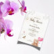 The gentle beige background with soft botanical accents, a flying sparrow, and butterfly creates a calm and loving woodland theme, perfect for a baby girl or gender-neutral party.