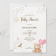 Celebrate your upcoming arrival with this sweet and whimsical baby shower invitation featuring a watercolor bear holding a pink heart balloon.