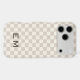 This beige checker iPhone case blends soft neutral tones with a classic monogram for a look that feels polished and timeless. The subtle cream and taupe grid adds texture without overpowering, while the serif initials keep it personal and elevated. Designed for those who love understated luxury and clean design, it pairs perfectly with neutral wardrobes and minimalist spaces.