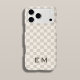 This beige chequered iPhone case blends soft neutral tones with a classic monogram for a look that feels polished and timeless. The subtle cream and taupe grid adds texture without overpowering, while the serif initials keep it personal and elevated. Designed for those who love understated luxury and clean design, it pairs perfectly with neutral wardrobes and minimalist spaces.