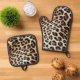 Cream Black Leopard Print Oven Mitt & Pot Holder Set