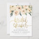 Cream & Blue Flowers Gold Script Bridal Shower Invitation