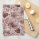 Cream Burgundy Red Hearts Flowers Kitchen Towel