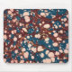 This background print was done on paper. The background colour is turquoise with a rust-coloured web running through-out. There are many irregular-shaped spots or dots which are a cream-colour that are attached to or caught up in the web.
