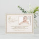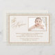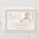 Add your own photo to this Baptism photo card invitation with cream floral border, stylish Baptism typography with butterfly accent and cream rosary beads with cross adorning the picture frame. Just upload your own photo for a special invitation or announcement. Invitations are easy to customize and come complete with envelopes and your choice of paper.